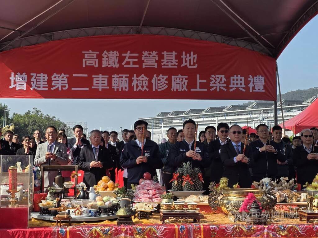台灣高鐵積極準備新世代列車N700ST引進後的各項準備工作,其中,被喻為N700ST未來在台灣的新家、左營基地增建「第2車輛檢修廠」,今天舉行上梁典禮。邀請交通部長陳世凱、高雄市長陳其邁,以及台灣高鐵公司董事長史哲共同主持祈福儀式,在鋼梁安裝螺栓,祈求工程平安順利。
