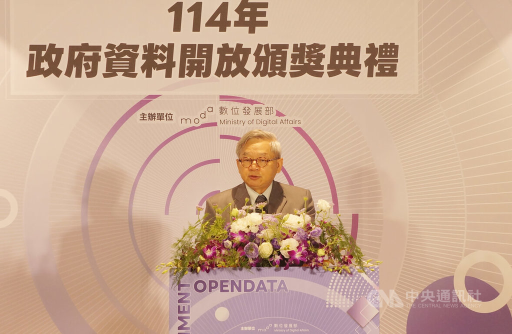 數發部今天舉辦「114年政府資料開放頒獎典禮」,由行政院政委兼國科會主委吳誠文、數發部長林宜敬頒發資料開放金質獎、品質進步獎、資料開放人氣獎、開放文本語料績優獎等獎項。