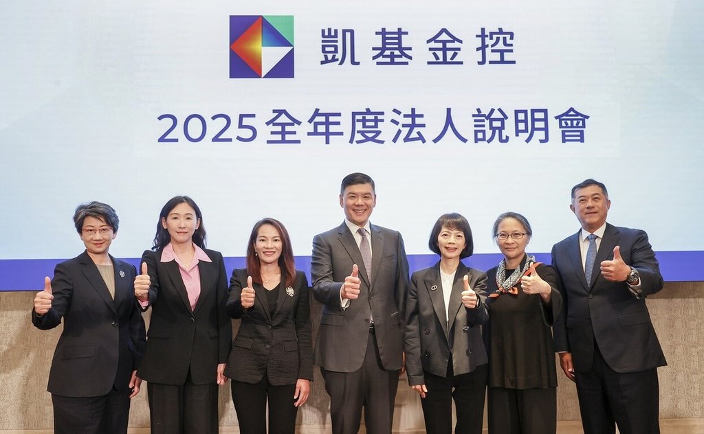 凱基金今天下午舉行2025年全年法人說明會,包括楊文鈞、凱基金財務長黃碧玲、凱基人壽總經理郭瑜玲皆親自出席。