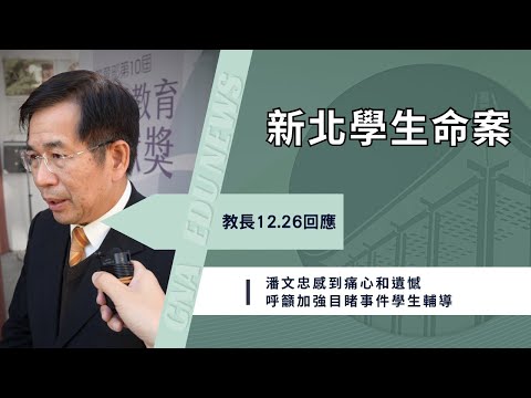 教育部長潘文忠今天出席第10屆藝術教育貢獻獎頒獎典禮,會前接受媒體聯訪,對上述事件感到痛心和遺憾,已特別請新北市教育局長張明文全力提供相關協助。