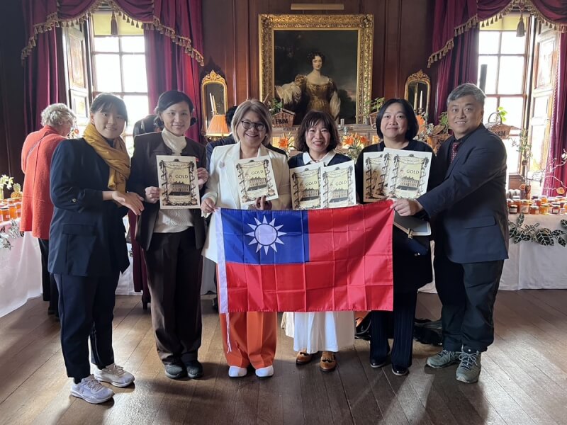 (中央社記者陳韻聿倫敦20日專電)台灣品牌參加英國「世界柑橘果醬大賽」今年獲獎數再創紀錄,總計奪得超過40個獎,包括8個金獎。其中,以台灣特有種南庄橙為基底,融合賽夏族森林蜜、馬奧(山胡椒)、宜蘭檸檬等台灣特色食材的果醬,也分別摘下銀、銅獎。