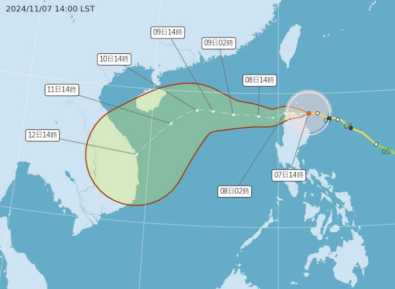 氣象署說,銀杏下午增強為強烈颱風,不過暴風圈已碰觸到呂宋島陸地,強度將逐漸減弱,研判未來持續以偏西方向逐漸進入南海,不會直接影響台灣的天氣,不過仍可能帶來沿海長浪、強風及迎風面較強的降雨。