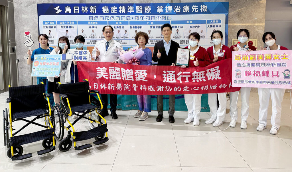 經歷意外後,劉女體會行動不便帶來的困難,了解輪椅對病患重要性,她決定捐贈輪椅給烏日林新醫院,院方日前舉辦捐贈儀式,烏日林新醫院院長林明輝、林建中及醫療團隊代表等人也出席見證。