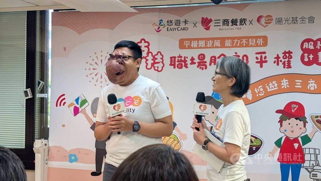 (中央社記者曾以寧台北17日電)顏損者進入職場約5成會面對外貌歧視挑戰,陽光基金會與三商餐飲集團合作推動「職場臉部平權服務計畫」,成功助4名顏損者實習或就職,幫助他們在工作崗位上肯定自我價值。