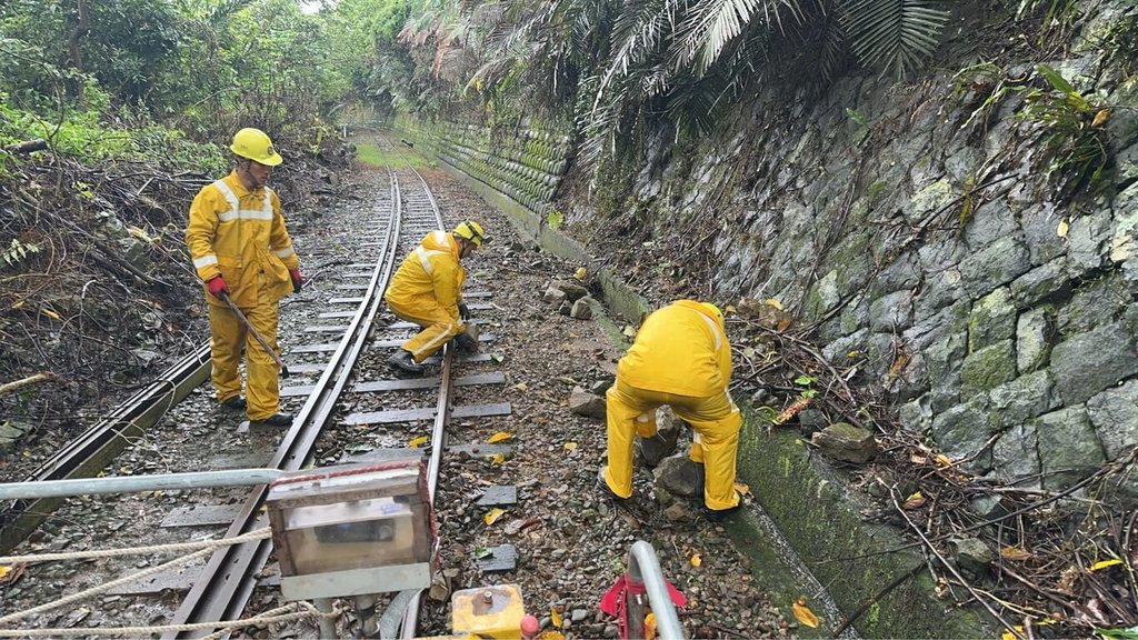 阿里山林業鐵路及文化資產管理處今天發布新聞稿表示,林鐵本線嘉義到阿里山路段,多處倒樹、土石崩落,明天將完成路線清理作業,並進行列車試運轉,預計後天(7日)恢復營運。