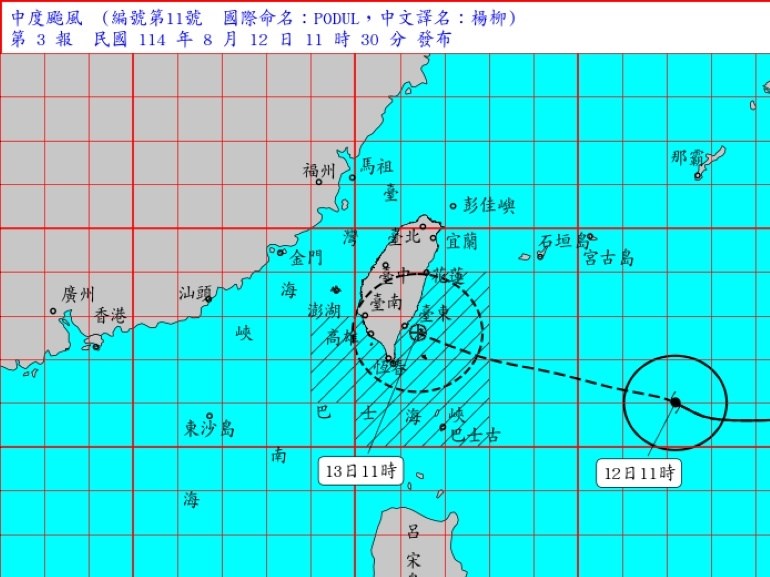 - 颱風楊柳逼近 氣象署午後2時半將發布陸警2025/08/12 12:08