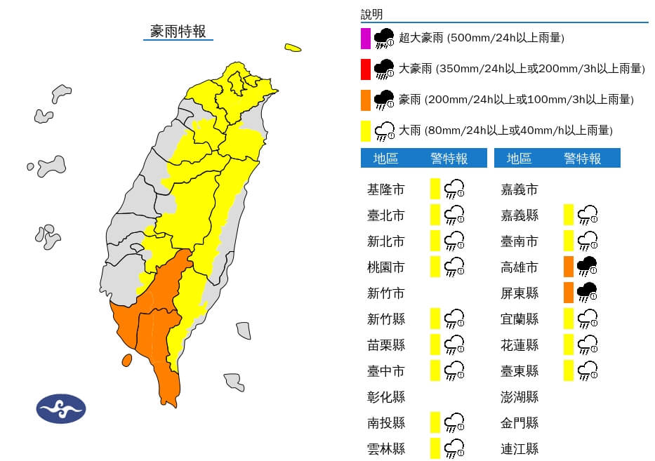 高屏豪雨特報 大台北、桃園及山區防大雨