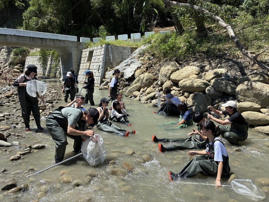 本庄高等學院河川調查隊每年在日本本庄市展開志工性質河川調查,成果出版成冊,此次來台,不僅攜帶最新出版成果書,且和台南一中科學班前往曾文溪進行河川生態田野調查,兩校學生混合分組,穿著防水裝備,手持網具下水,實地觀察溪流生態。