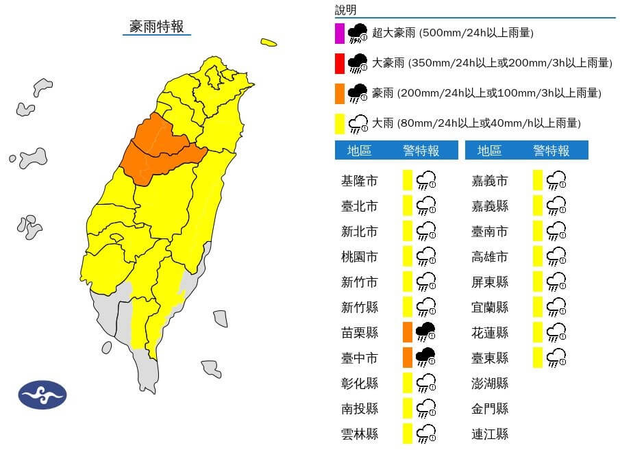 - 台中苗栗豪雨特報 台南以北、宜花防大雨2025/09/07 16:05