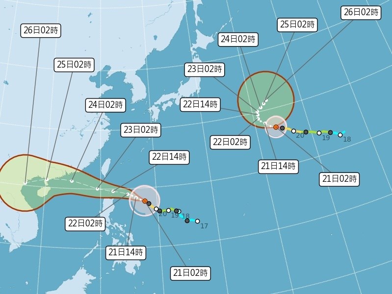 颱風樺加沙最快21日上午發海警 22日可能轉強颱東半部防豪雨
