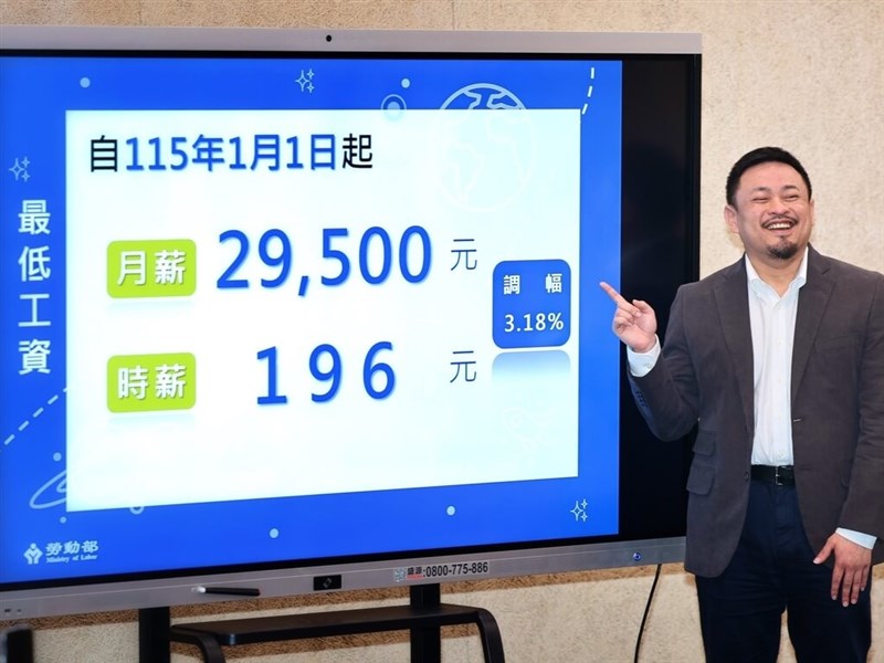 勞動部最低工資審議會今天決議,最低工資月薪從新台幣2萬8590元調高到2萬9500元、時薪從190元調漲到196元,後續將送行政院核定。
