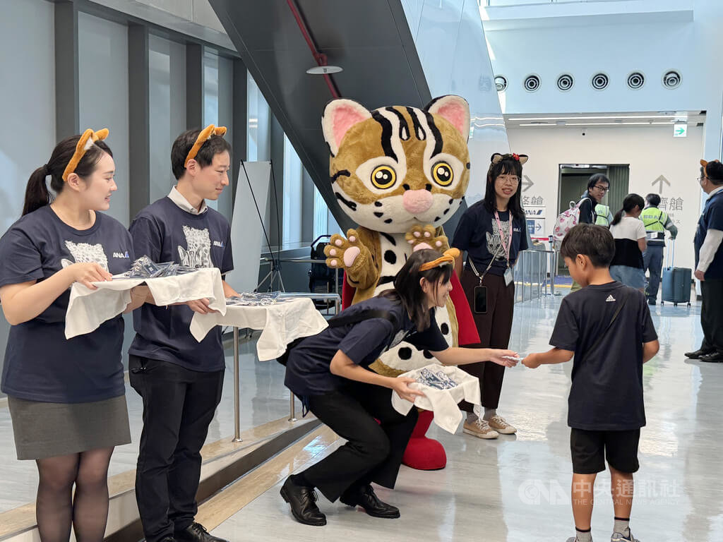 ANA表示,石虎保育大使阿虎除了現身活動攤位外,今天搭乘ANA從松山出發前往羽田的航班旅客,都可拿到特製石虎行李飄帶,希望提升旅客對石虎生態關注,今天NH851航班也剛好使用呼應永續的彩繪機載客。