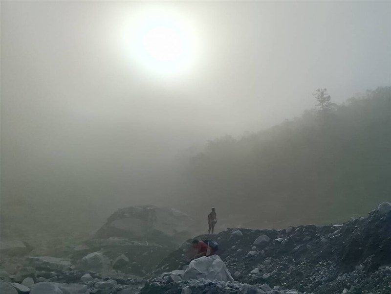 (中央社記者張祈花蓮縣5日電)林保署花蓮分署上個月30日組成2支深山探勘小隊,進行馬太鞍溪堰塞湖路線踏察特遣任務,確認可通行路徑;昨天順利抵達湖區,山區呈現灰白荒蕪、煙塵瀰漫景象。