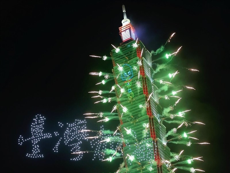 台北101國慶煙火首次結合無人機 點亮信義區夜空[影]
