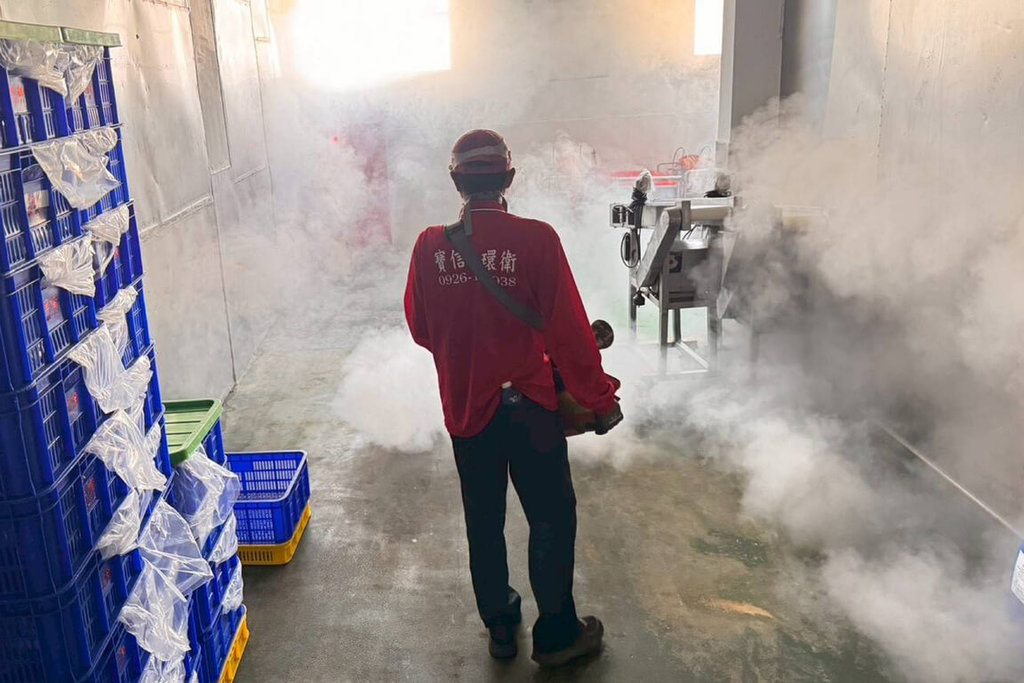 衛生局指出,18日已完成相關場所戶內及戶外化學防治作業,清除積水容器戶內6處、戶外4處,無陽性容器,並發現移工宿舍地下室有大面積積水,孳生病媒蚊風險極高,登革熱防治中心與有關防疫團隊已列管整頓,規劃並持續加強查核移工宿舍環境。