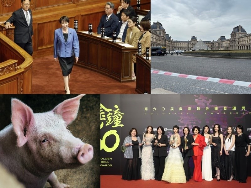 一週大事關注焦點:高市早苗成日本首位女首相/羅浮宮盜竊案/中共四中落幕/美派福特號航艦赴拉美/台灣疑似首例非洲豬瘟/馬太鞍溪堰塞湖紅色警戒解除/藝人閃兵案/普發現金時程出爐