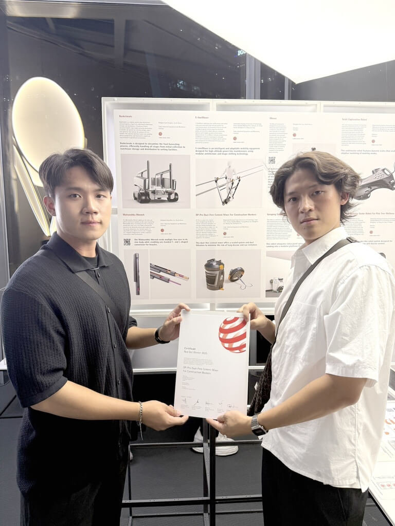 北科大工業設計系教師黃孟帆指導學生李祥耀與黃柏諺,共同設計「DP-Pro裝修師傅無塵水泥攪拌機」,榮獲2025年德國紅點概念設計獎。