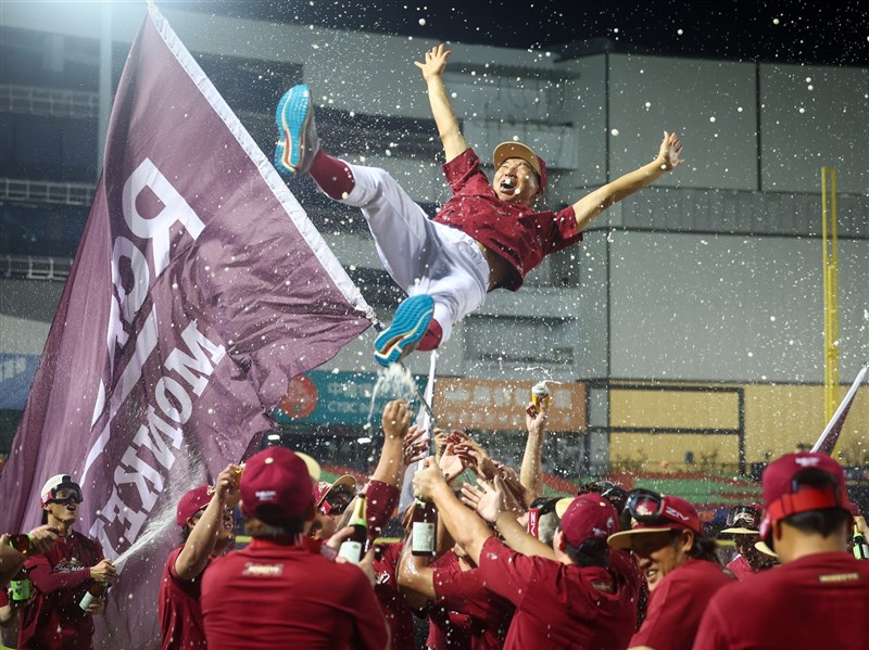 (中央社網站)中職樂天桃猿27日第5戰以9比7擊退中信兄弟,最終奪下隊史第8冠、睽違6年的冠軍,也是樂天集團接手後首冠。連鎖超商7-ELEVEN和樂天生態圈提供多項消費優惠,邀請球迷一同歡慶樂天桃猿封王。