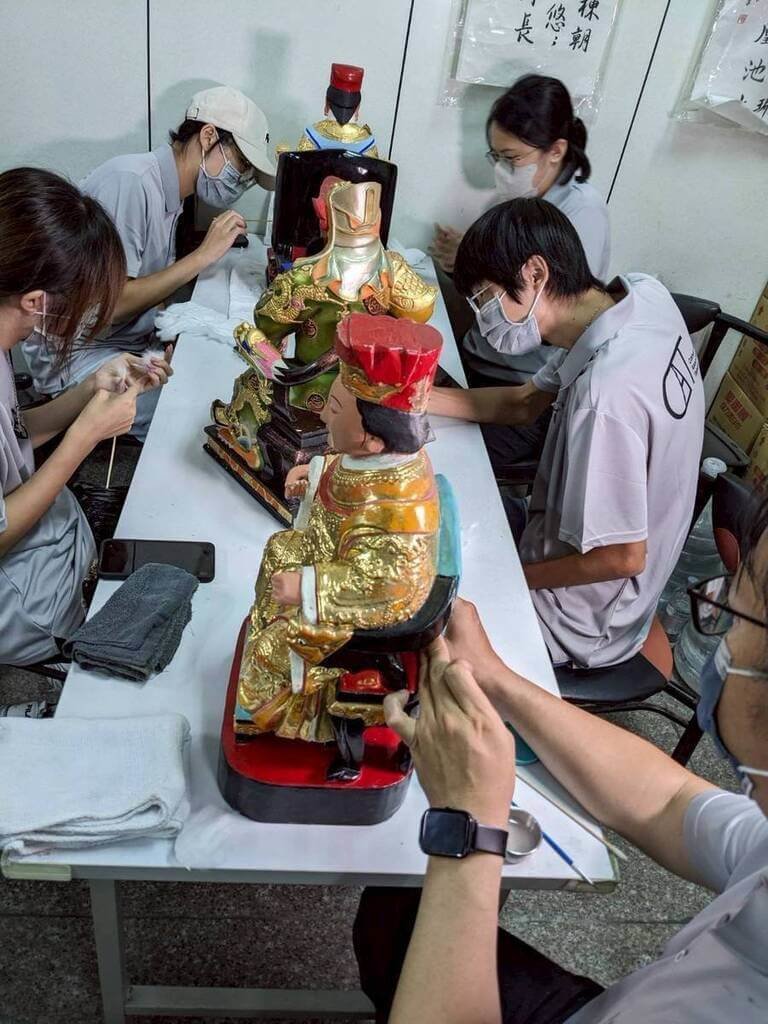 志工團隊於10月24日至26日期間展開第一階段任務,包括文物攝影、檢視登錄、拓印銘文與初步清潔加固等作業,確保每件文物的現況被完整記錄保存;第二批志工小隊將於今天再度進駐現場,接力展開基礎乾式清潔、神轎構件定位與試組裝等精細作業,確保受損文物在安全環境中妥善保存。