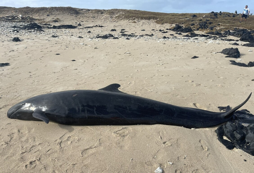 澎湖農漁局表示,在吉貝岸際沙灘上發現的死亡鯨豚,體長達4.5公尺,重逾1000公斤左右,目前由安檢單位協助以帆布或大垃圾袋等暫置。中華鯨豚協會在外觀辨識,為稀有的「偽虎鯨」,且死亡時間不久,極具解剖研究價值,下午將前往進行解剖採樣,了解鯨豚死亡原因。