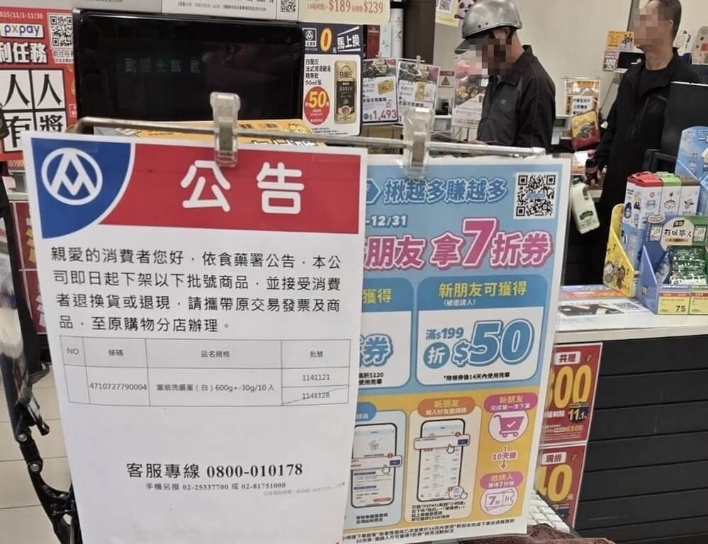 嘉義縣衛生局今天發布新聞稿表示,7日傍晚接獲食藥署通報,隨即全面稽查,查核結果除全聯中埔中山門市曾進貨「富翁洗選蛋(白殼)」10粒裝(有效日期114年11月22日)7盒,已於11月7日全數退運未流入市面;全聯新港中山門市則進貨同品牌10粒裝(有效日期114年11月21日)20盒,此批產品已全數售出。