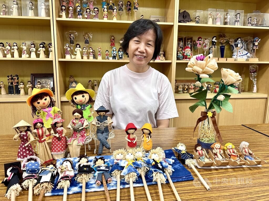 (中央社記者鄭維真彰化11日電)彰化田中鎮太平社區發展協會理事長周玲玟,將看似無用玉米葉化為手作特色娃娃,藉教學將環保理念帶入學校與社區,並教國際學生製作玉米娃娃,跨海傳遞台灣農村質樸與創意。