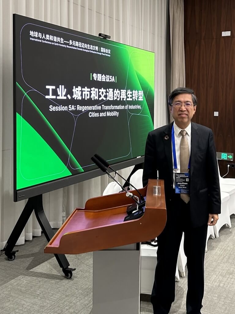 陳振川今天告訴中央社記者,今年獲選後,他11月首度參與羅馬俱樂部在中國舉辦的國際會議,先是於2日到4日在上海工程技術大學主辦的「生態文明:從兩山理念到全球行動戰略研討會」中,以「在大災難後如何結合各界力量重建具永續性及韌性之運輸系統」為主題發表觀點。