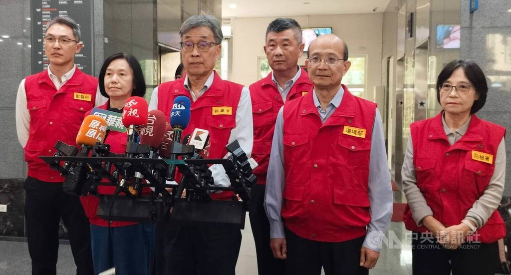 非洲豬瘟中央災害應變中心今天開會,會後由指揮官農業部長陳駿季、林左祥等人接受媒體聯訪。