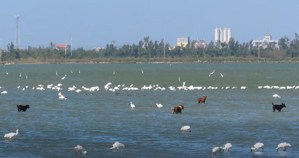 蘇家弘今天中午就拍攝到4隻狗在濕地追逐黑面琵鷺,特別將影片貼在臉書(Facebook)上,希望相關單位能注意,不要讓野狗威脅野鳥的生存。他說在布袋新塭一帶見過更多野狗在追鳥,數目超過10隻。