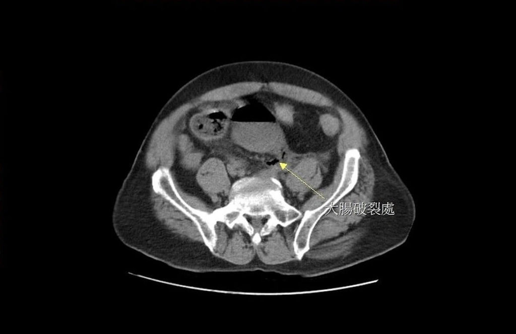 大千醫院指出,黃男日前又因連續3天無法解便而自行灌腸,發現沒有效果,於是改用更長的管子,把瀉藥送入直腸深處灌腸,突然引發劇痛,被家人緊急送至醫院急診,經電腦斷層掃描後發現,男子直腸上端處有巨大破洞,糞水隨著破洞流進腹腔,引發嚴重腹膜炎。