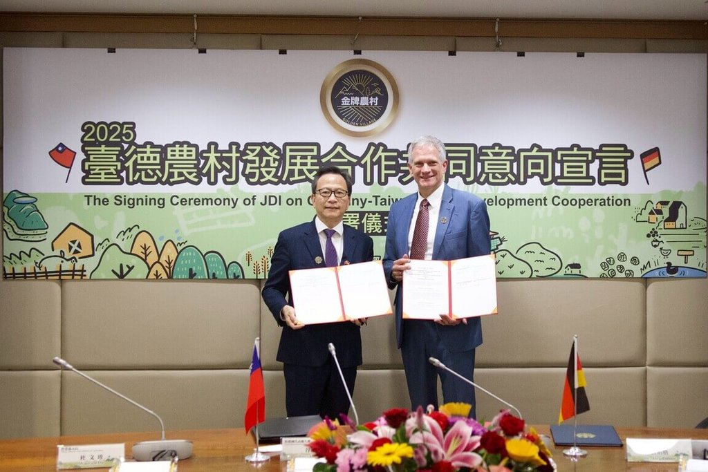 農村水保署發布新聞稿,與德國聯邦農糧局推動多年的交流合作,今天正式簽署「2025台德國際農村發展合作共同意向宣言(JDI)」,由中華民國駐德國代表處大使谷瑞生及德國在台協會大使Karsten Tietz(狄嘉信)簽署,確立台德在永續農村發展領域的深度合作,共同應對快速國際情勢變遷下農村轉型與創新的挑戰。