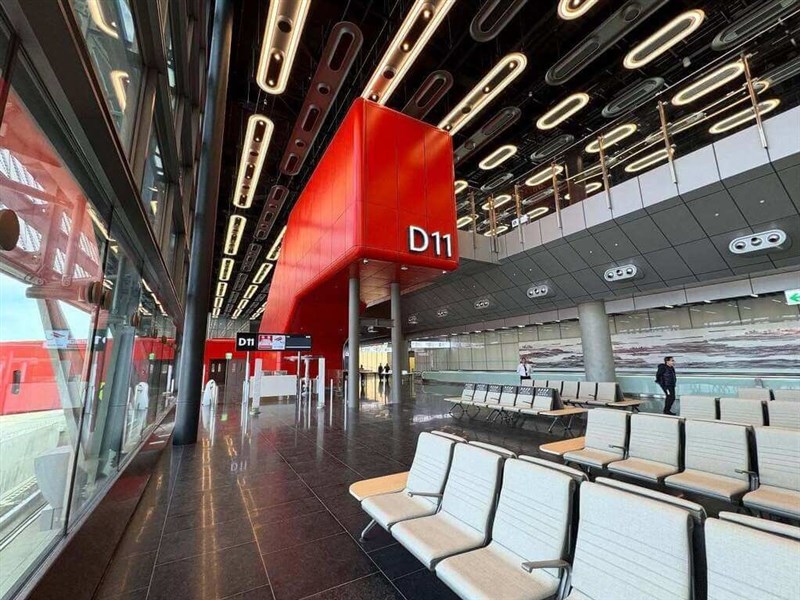 林國顯表示,由國際知名設計師羅傑斯(Richard Rogers)團隊設計的空間與以往的候機室完全不同,採高挑透明通透的設計,讓光線跟金色夕陽餘暉可以透過玻璃帷幕照進候機大廳,目前知名咖啡品牌及餐飲店都已經進駐,希望帶給旅客嶄新體驗。
