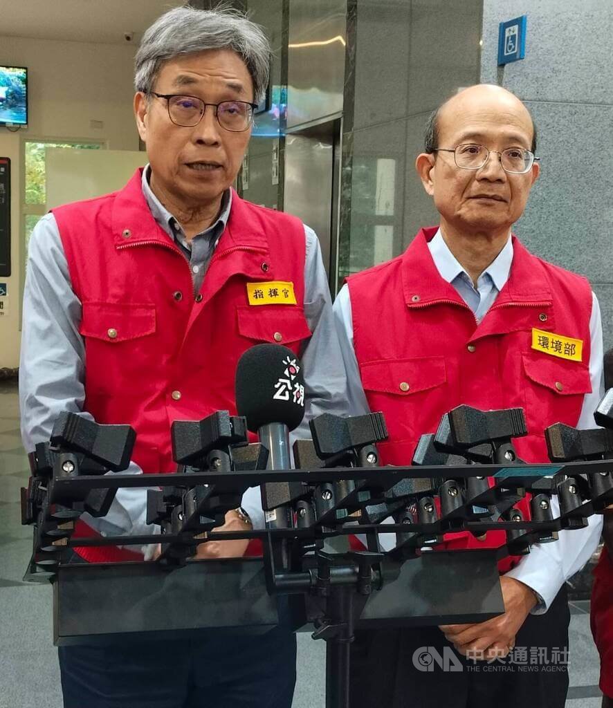 非洲豬瘟中央災害應變中心5日下午開會,應變中心指揮官陳駿季(左)會後受訪指出,將派祕密客出任務,到高風險商店購買食品並送相關單位檢驗,盼能以更嚴謹方式防堵非洲豬瘟疫情。中央社記者汪淑芬攝 114年12月5日