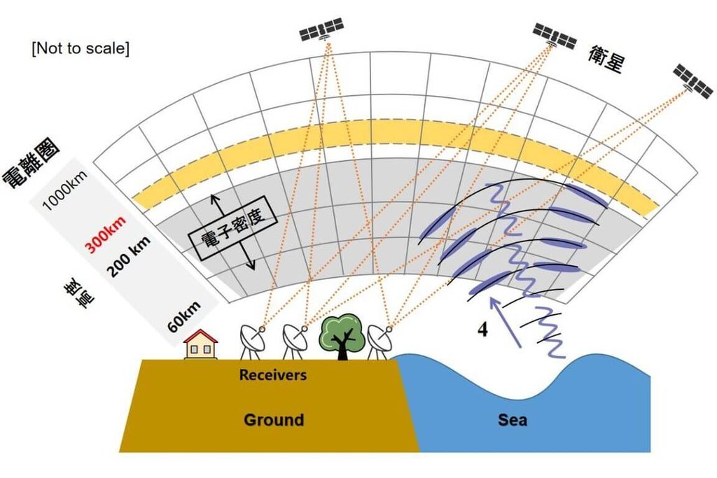 為評估電離層訊號作為海嘯預警工具的可行性,研究團隊比對日本5處潮位站的海嘯到達時間,結果顯示在距震央超過300公里的沿岸地區,電離層擾動可比海嘯提早8至29分鐘被偵測,具有早期警戒潛力;但在300公里內的近岸地區,電離層訊號反而稍晚於海嘯到達,顯示近岸監測仍需技術突破。