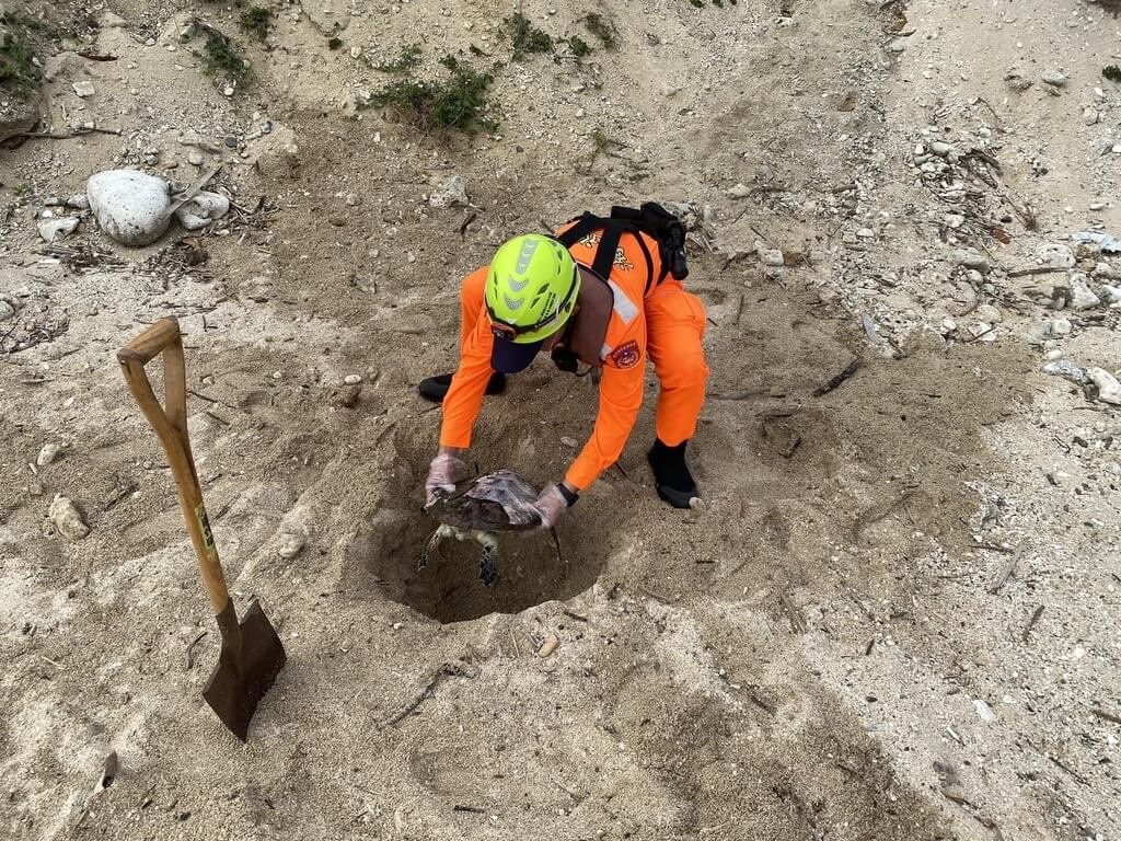 (中央社記者張已亷高雄24日電)有人今天在小琉球發現一隻死亡海龜,經海保救援網判斷,該個體為玳瑁死亡擱淺,因屍體腐敗無學術價值,由海巡人員現地掩埋。海保署提醒,切勿撿拾屍體,保護自身及避免觸法。