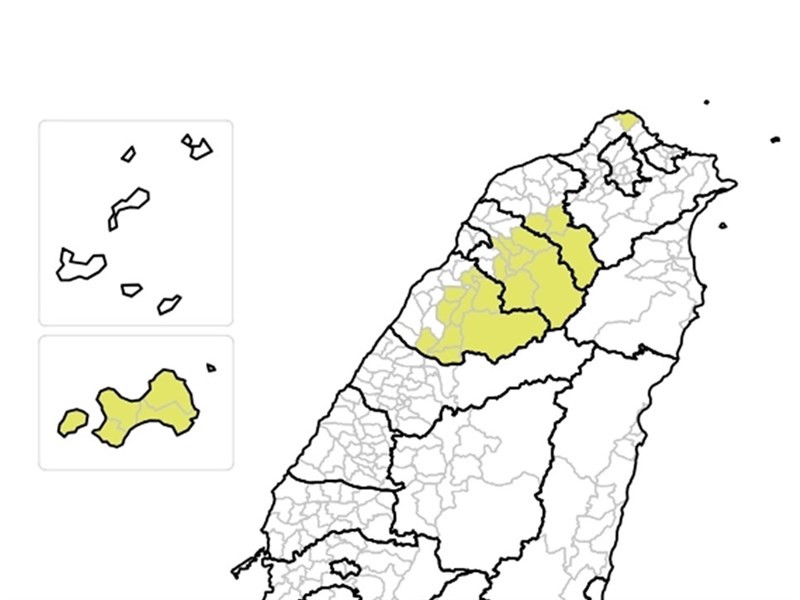 根據中央氣象署資訊,低溫黃色燈號區域為新北市、桃園市、新竹縣、苗栗縣、金門縣。