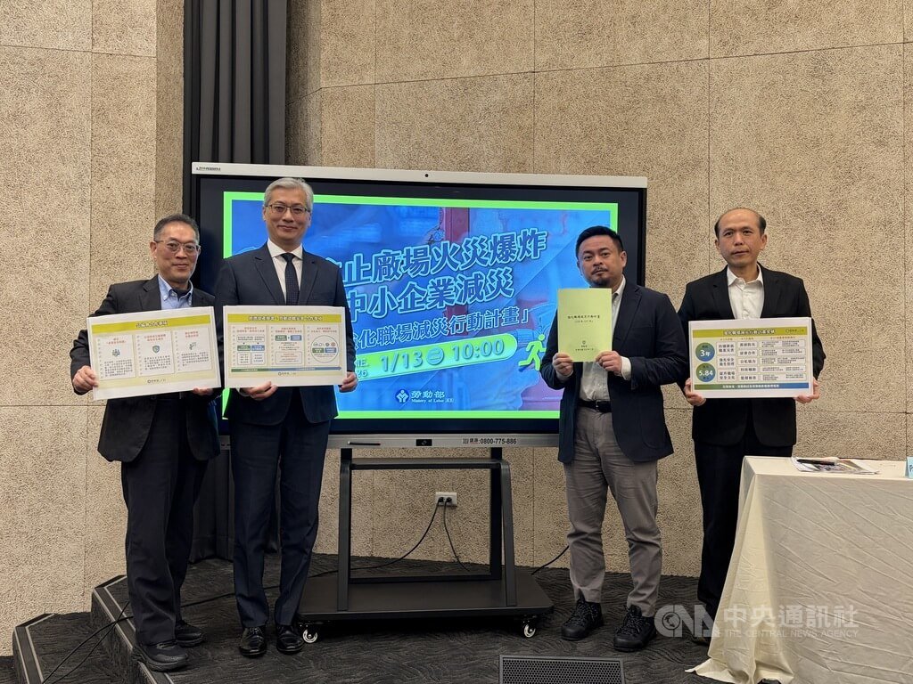 勞動部今天召開記者會,由勞動部長洪申翰攜手經濟部產發署副署長鄒宇新、工總副秘書長陳鴻文一同公布第二波強化職場減災計畫,說明針對工廠火災爆炸及資源缺乏中小企業的減災策略。