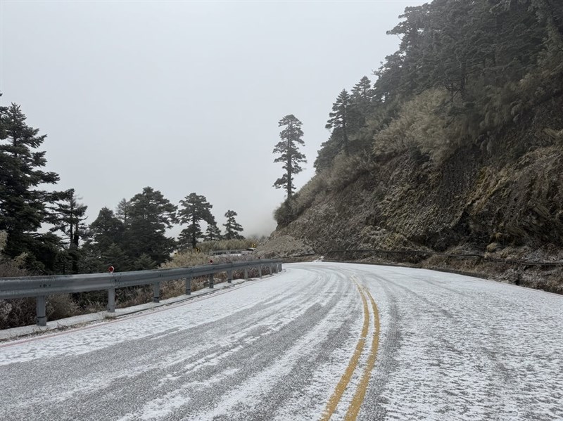 合歡山今天間歇降冰霰,不過道路未有明顯積雪、結冰,仍吸引「追雪族」不畏低溫上山賞景;交通部公路局中區養護工程分局中午發布訊息表示,依目前氣象情資顯示,受強烈大陸冷氣團影響,省道台14甲線3000公尺以上、台8線高海拔路段有路面結冰機率。