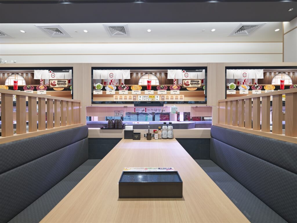 壽司郎微風南山店占地約150坪,設有142個座席。業者今天發布新聞稿表示,台灣壽司郎首度將「DIGIRO壽司郎數位迴轉壽司」(Digital SushiroVision)導入微風南山店,集結巨型螢幕、數位壽司迴轉鏈與趣味遊戲,讓用餐變得更加直覺、操作更流暢,顧客可透過螢幕點餐、壽司鏈送餐。