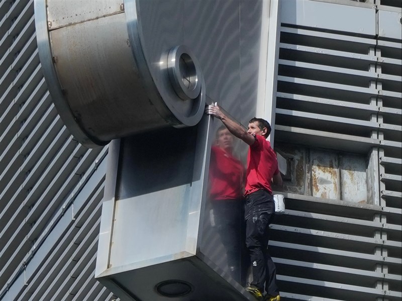 不過他也是有底線的。他說有不少人跟他比愛心手勢,「這個我沒辦法了」,因為「我手還要抓著(大樓外牆)呢!」