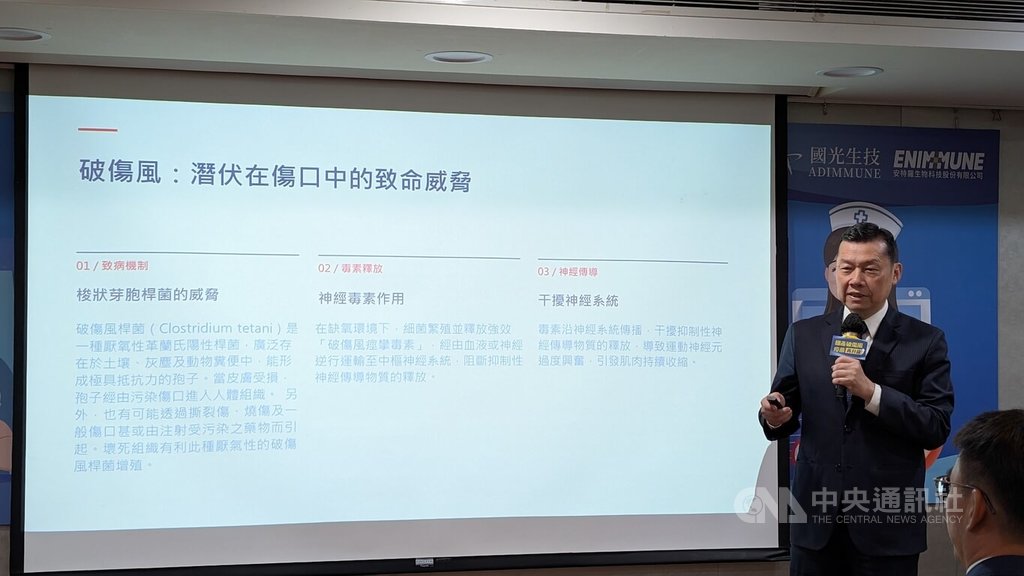 國光生技執行副總經理張哲偉指出,國光生產破傷風疫苗,生產到2015年,因應PIC/GMP國際標準上路,於2019年投入新廠建設,2023年第一季已通過衛福部食藥署GMP查廠認證及藥證展延,重新投產,並於2024年重新上市,是台灣唯一取得藥證的國產破傷風疫苗。(編輯:李亨山)1150204