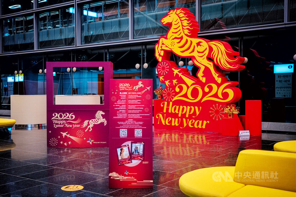 (中央社記者吳睿騏桃園14日電)桃園國際機場公司今年以「馬上啟程」為主軸,整體以喜氣紅金為主色,融入煙火、航機與節慶紋樣,設置高約4公尺的馬年立體雷雕,塑造昂首躍起馬年意象,向旅客獻上新年祝福。
