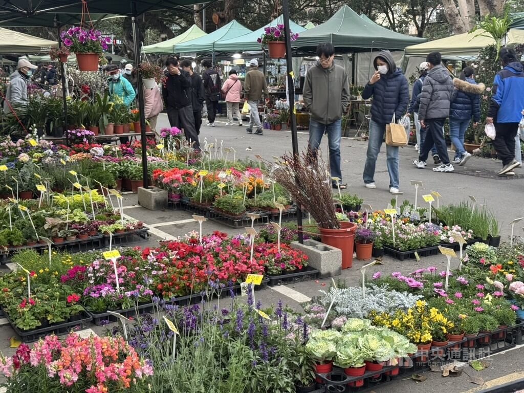 位於新竹市立田徑場旁的新竹假日花市近日湧現採買人潮,各式應景盆栽將花市妝點成繽紛的藝廊,民眾紛紛走入攤位,尋覓象徵吉祥開運的植栽,期盼為家中增添喜氣。
