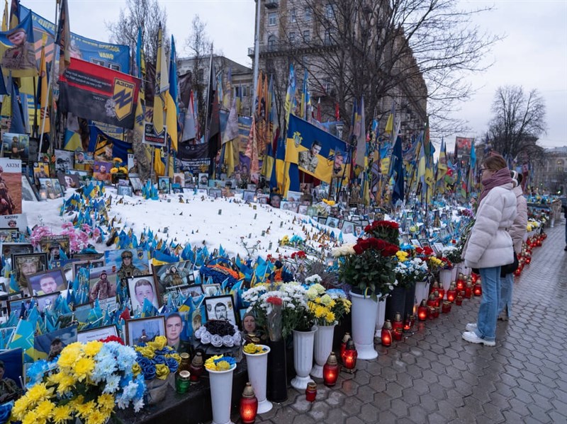 俄烏戰事屆滿4週年,烏克蘭總統澤倫斯基表示,希望烏克蘭能於2027年加入歐盟。巴黎艾菲爾鐵塔點亮代表烏克蘭國旗的藍、黃色燈光以示支持;百餘名民眾在布魯塞爾的歐洲議會周邊遊行,強調和烏克蘭站在一起;赫爾辛基參議院廣場則舉辦點燈活動,呼籲國際社會持續聲援。烏克蘭首都基輔的獨立廣場附近插滿烏克蘭國旗等旗幟,擺放一張張陣亡士兵照片。愛子在前線身亡的柳波芙哽咽表示,「我希望他的犧牲不是白費,希望人們記得自由的代價」。(看完整報導)