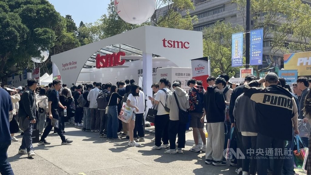 (中央社記者魯鋼駿新竹市14日電)桃竹苗OpenHouse就業博覽會今天在國立陽明交通大學光復校區登場,集結逾200家企業、釋出萬個職缺,不少民眾瞄準AI(人工智慧)前景搶布局,半導體大廠攤位人氣最夯。