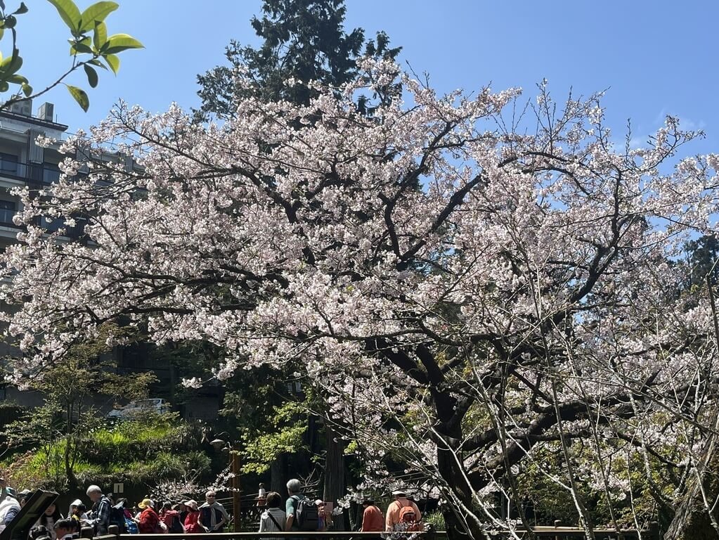 (中央社記者蔡智明嘉義縣24日電)阿里山國家森林遊樂區位於林保署嘉義分署阿里山工作站前的櫻王(染井吉野櫻),今天盛開,整株呈白色狀美不勝收;嘉義分署指出,花況持續7至10天,邀大家來賞櫻。