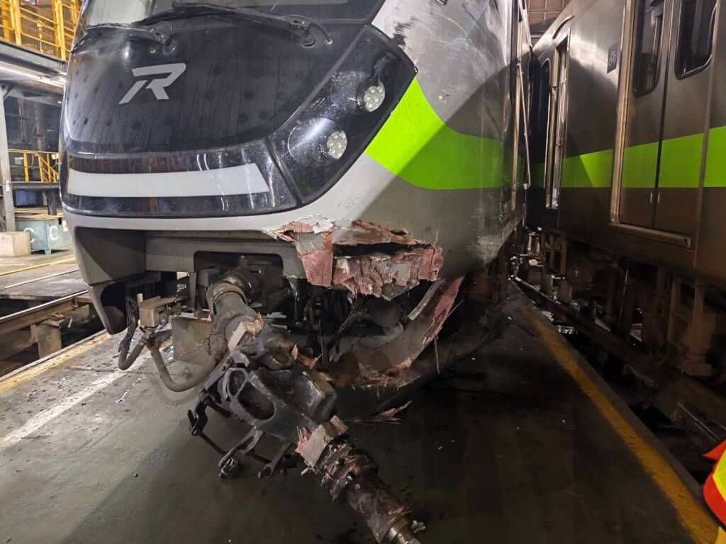 台鐵七堵調車場昨晚9時20分左右發生2列EMU900區間車相撞事故,其中1列第1車廂出軌,車頭全毀,另一列的部分車廂出軌,並由台鐵運安處調查詳細原因,而1名調車人員不慎跌倒受傷,經送醫初步診療後已出院。