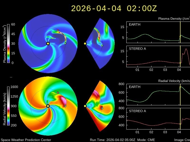 氣象署表示,受到太陽表面活躍區2日發生太陽閃焰,並伴隨顯著的日冕物質拋射事件,於今天通過近地太空環境,造成行星際磁場及太陽風的風速明顯增加,預估地磁擾動將有明顯增強,並持續影響約18小時,最大規模可能短暫達到中度磁暴等級。