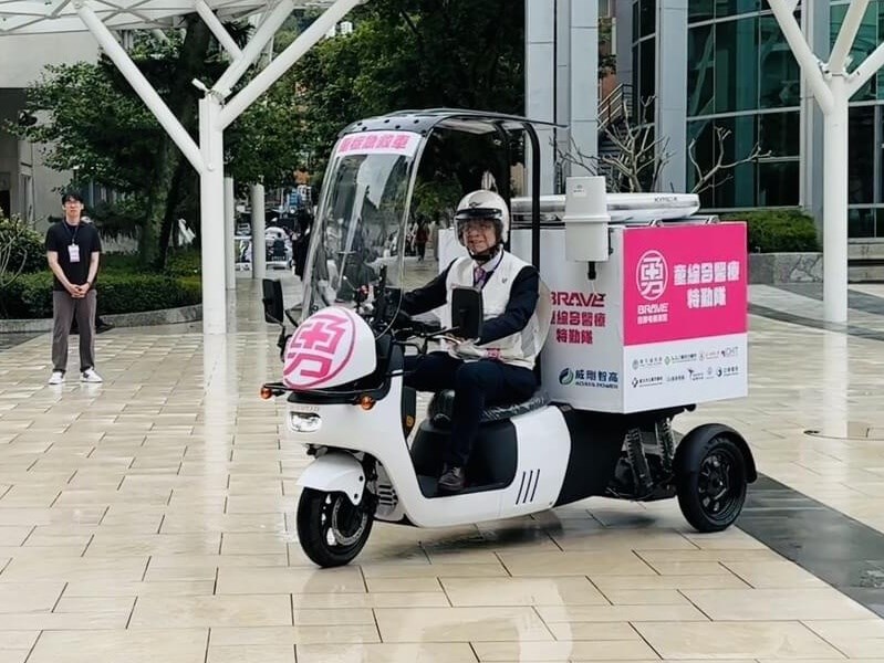 這套系統由7人座純電動車擔任「行動指揮車」,而電動三輪車可靈活穿梭人群,迅速抵達現場進行初步處置,並透過遠距照護系統、電子護身符,立即遠端傳遞跟交班病情,同時整合「海地星空」低軌衛星與通訊技術,即使在複雜或訊號不穩環境中,仍可維持穩定資訊傳輸。