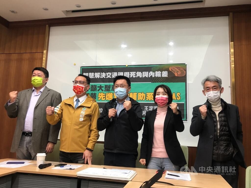 民進黨立委趙天麟、前民進黨台北市議員阮昭雄、前民進黨新北市議員何博文及前民進黨新竹市議員李妍慧等人,今天在立法院召開記者會,呼籲大型車輛應加裝「先進駕駛輔助系統(ADAS)」。